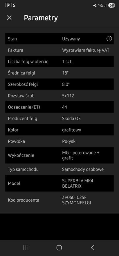 SPRZEDAM KONTAKT PIĘKNYCH ALUFELG W BARDZO ŁADNYM STANIE WRAZ Z OPONAMI ZIMOWYMI PIRELLI SOTTOZERO 3 DOT 4121 BIEŻNIK OK 6 MMJest to model stosowany w najnowszym modelu skody superb bardzo ciężko dostępny jeszcze do kupienia trafiają sie pojedyncze sztuki używane obecnie 2 lub 3 aukcję i bardzo zajechane i nadal z ceną 900-1200 za sztukę.