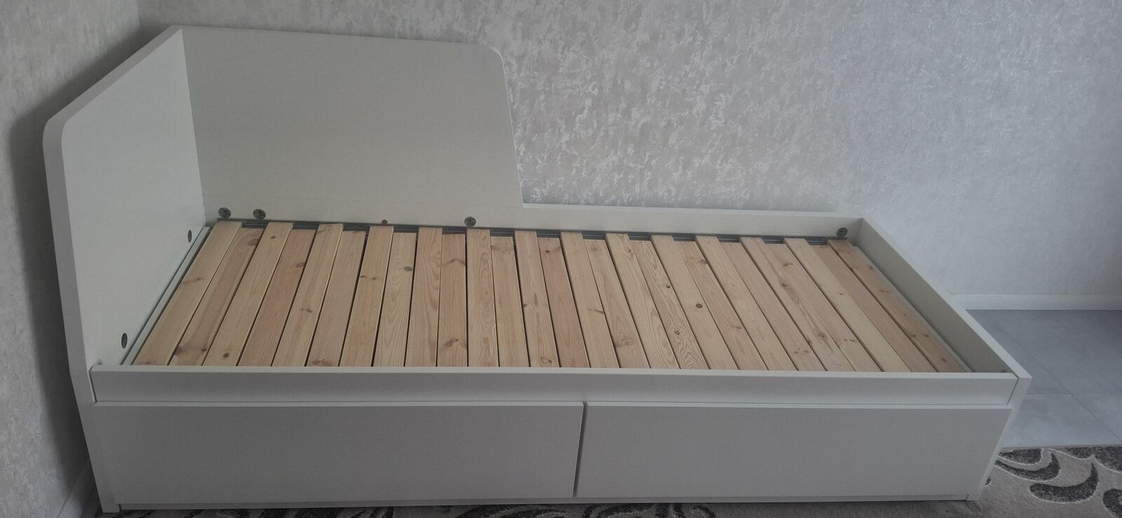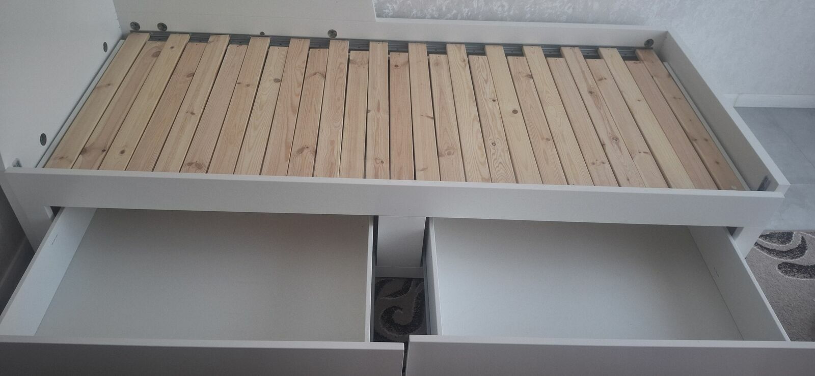 Łóżko posiada 2 pojemne szuflady na pościel lub inne rzeczy.