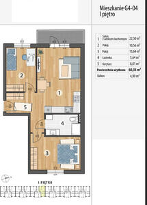 5Na sprzedaż 3-pokojowe mieszkanie o powierzchni 60,30m2 z dużym balkonem, znajdujące się piątym piętrze nowej ...