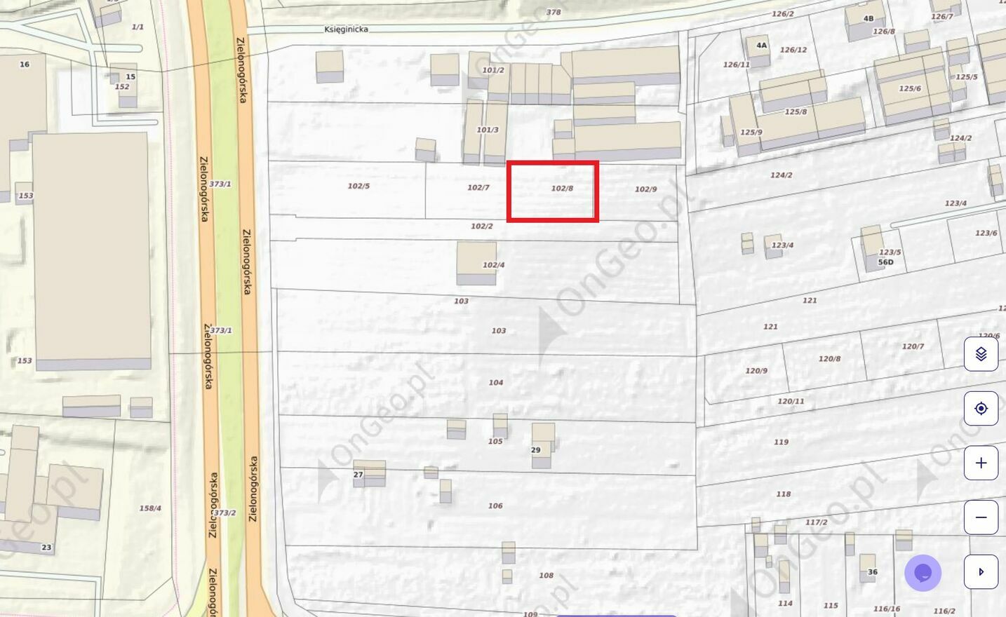 Działka znajduje się przy ulicy Zielonogórskiej, naprzeciwko byłego Lubinexu, w niedalekiej odległości od Lidl/Agata meble.