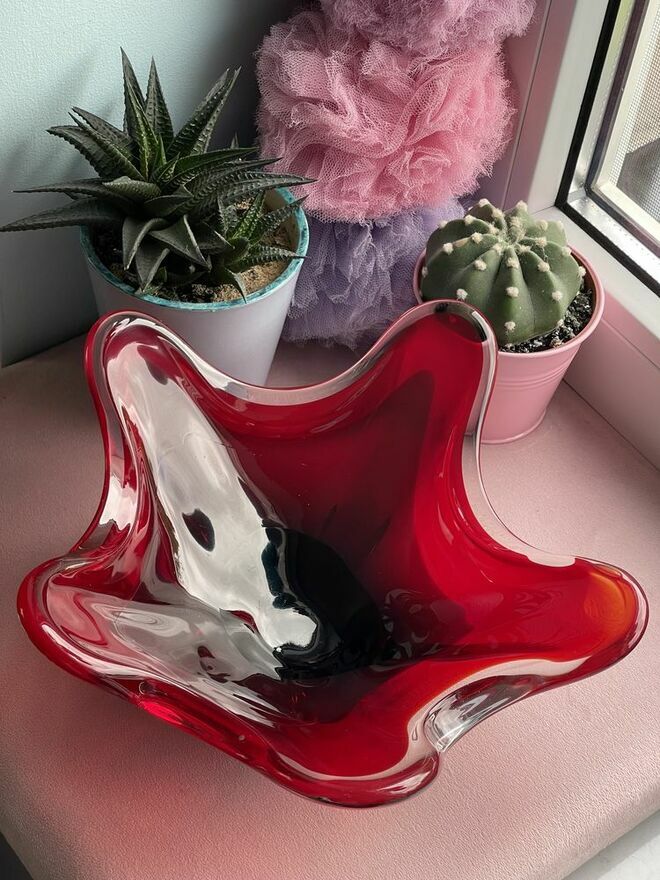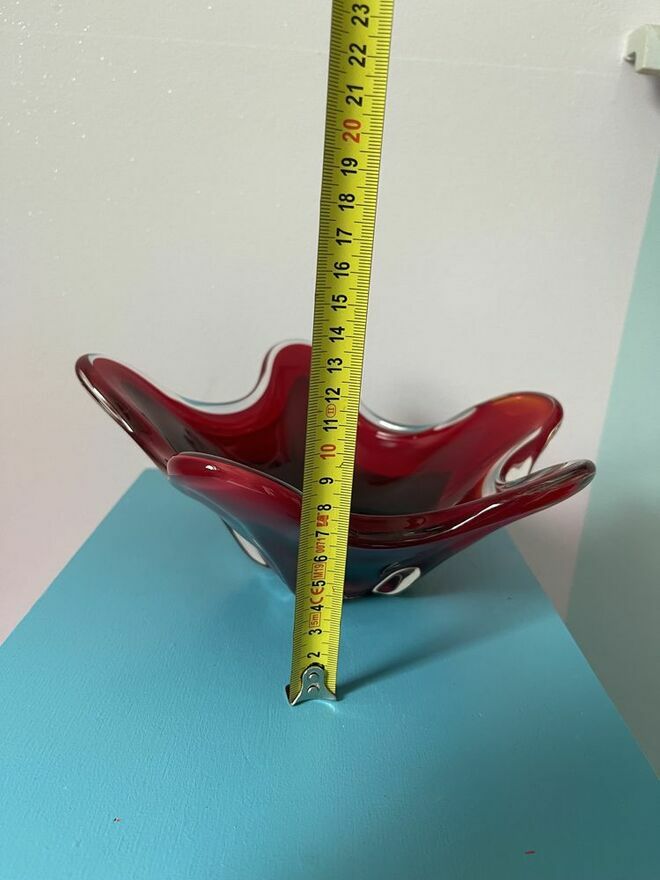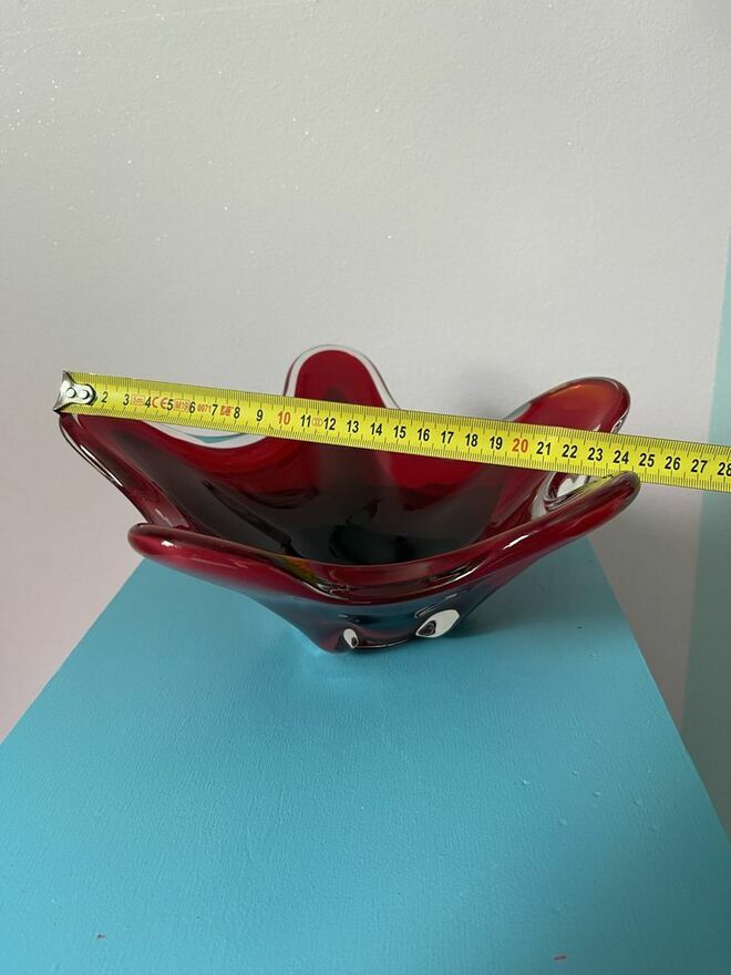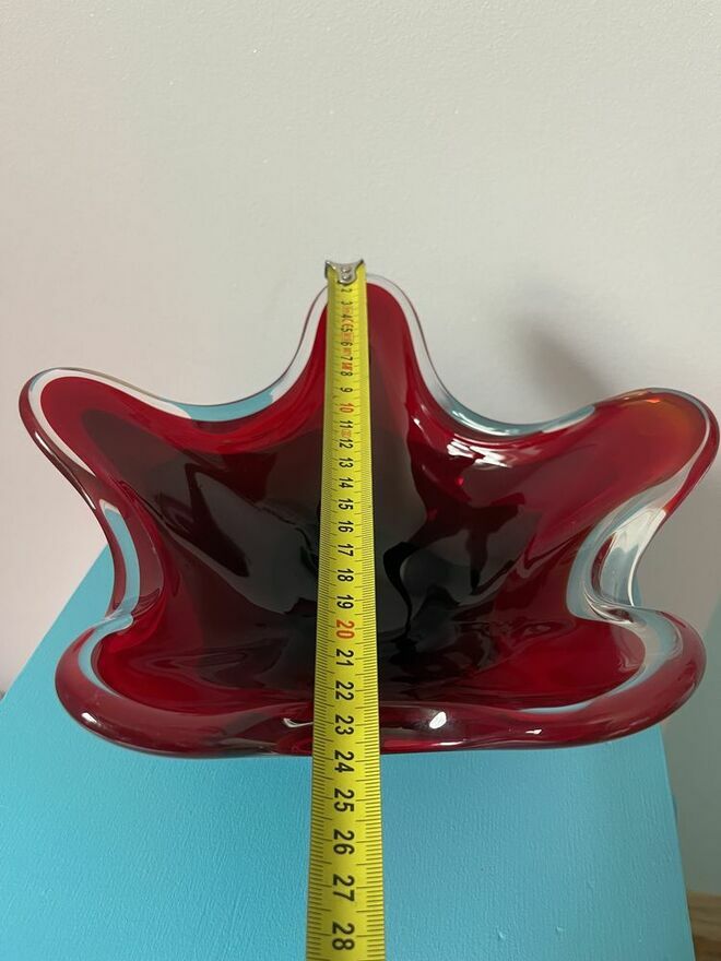 Szklana patera o wymiarach widocznych na zdjęciach.Posiada drobne ślady użytkowania - zarysowania ( widoczne na zdjęciu )