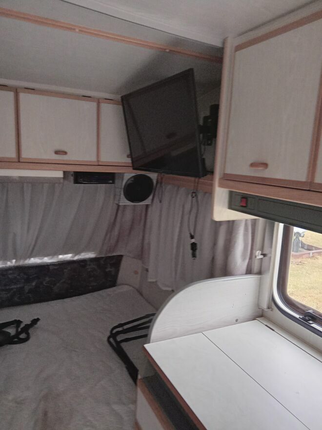 Sprzedam bardzo ładną przyczepę kempingową. Sucha bez zacieków szczelna zadbaną i gotową do wyjazdu.lekka 687kg DMC 1000kg Opłaty wiatol nie obowiązują. Nowe opony Solar z dwoma aku po 100 razem 200 ah. Antena + telewizor, mower,zaczep z stabilizatorem jazdy,przedsionki. Przyczepa posiada sypialnie z łożem małżeńskim oraz rozkładane dla dzieci. Lodówka (prąd,gaz) kuchenka trzy palniki,ogrzewanie gazowe. Łazienka z prysznicem i toaletą z kasetą wyciąganą na zewnątrz. Dwa schowki gdzie znajdują się rzeczy potrzebne podczs kampingowania 2×leżaki składane stół podłoga do przedsionka rozkładana suszarka.Dwa przedsionki z stelażem i hakami do mocowania.Pokrowiec plandeka na przyczepe.Wąż do podłączenia wody. Butla gaz duża, zbiorniki na wodę pitną i brudną.Posiada również gryl gazowy zewnętrzny, szafka zewnętrzna składana.Antena satelitarna wraz z stojakiem i urządzeniem do wyszukiwani satelity.Okna z zasłonami przeciw słonecznymi i moskitierami ,firanki zasłonki. Godna uwagi i polecam. Gotową do jazdy beż żadnego nakładu finansowego.Zarejestrowana z ważnymi badaniami tech do listopada i ubezpieczona.Zbigniew